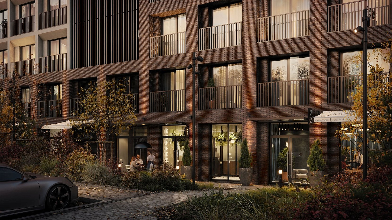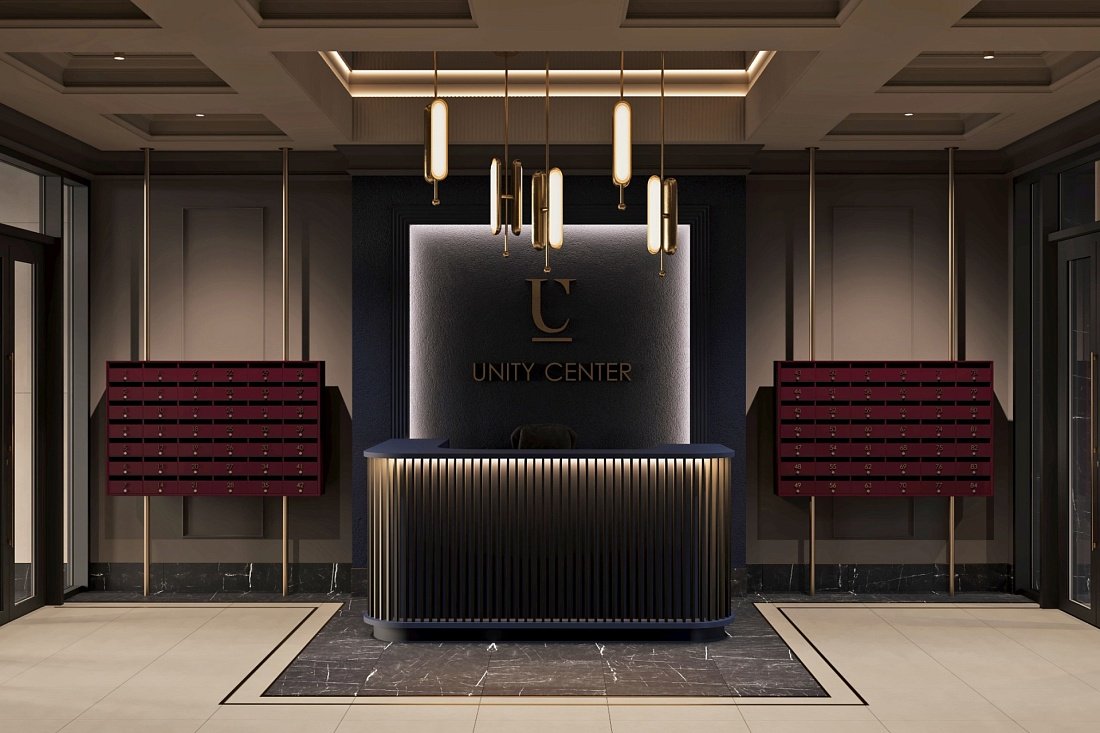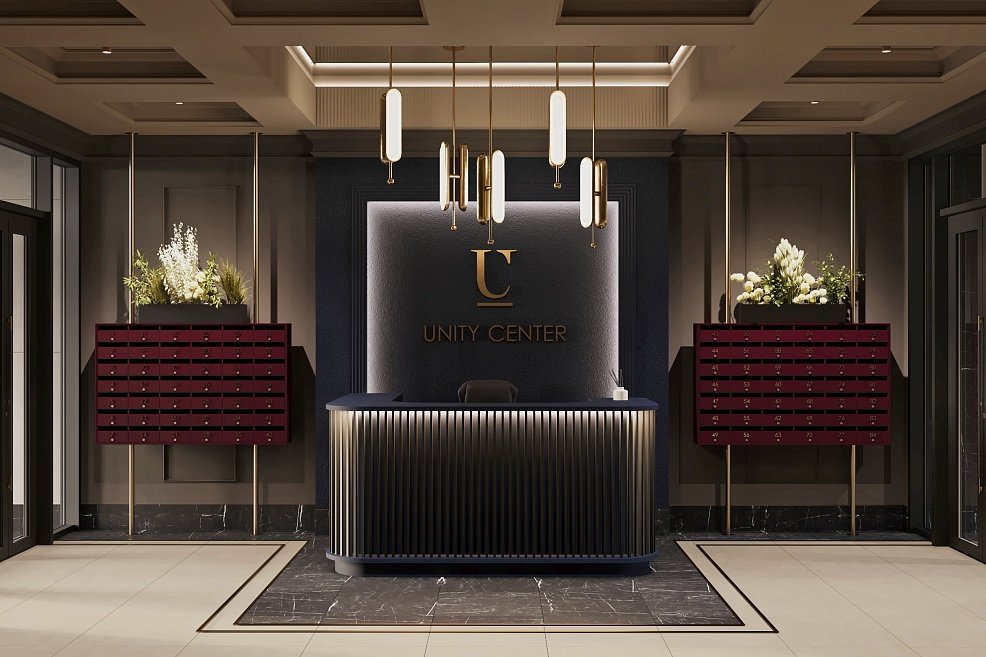 Архитектурная концепция проекта отличается смелыми решениями и выразительным стилем. В фасадах Unity Center — чистые линии, простые формы, спокойные цвета и текстуры, созвучные окружающему урбанистическому ландшафту. Особенностью проекта стало сложное остекление, придающее зданию уникальность и позволяющее обладателям редких квартир реализовать вдохновляющие дизайн-проекты.