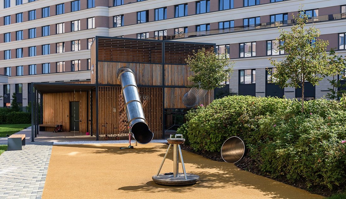 Проект дополняет клубный дом, который находится в самом уединенном месте квартала — в окружении зелени и тишины. Для максимального уровня приватности в нем отсутствуют коммерческие помещения.