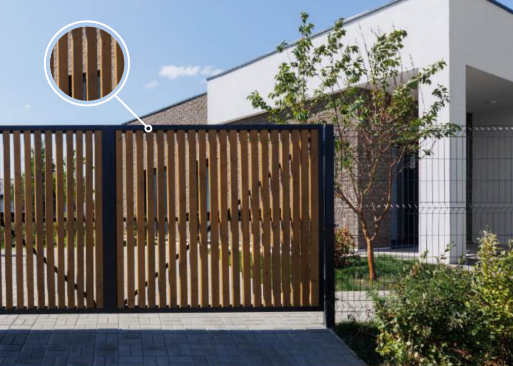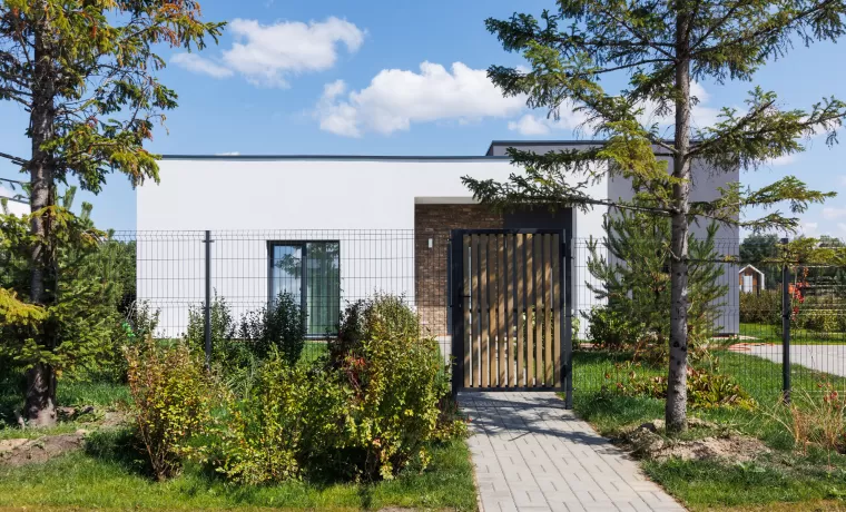 Ограждение в сдержанной стилистике, сплетающееся с живыми растениями, очерчивает границы вашего пространства.