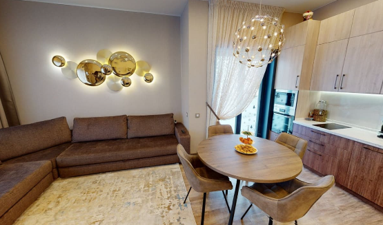 Пространство, созданное с исключительным вниманием к деталям, не только восхищает своим эстетическим великолепием, но и погружает в атмосферу безмятежного уюта. Каждая линия и текстура продуманы для максимального комфорта, создавая подходящую обстановку для жизни и отдыха.
