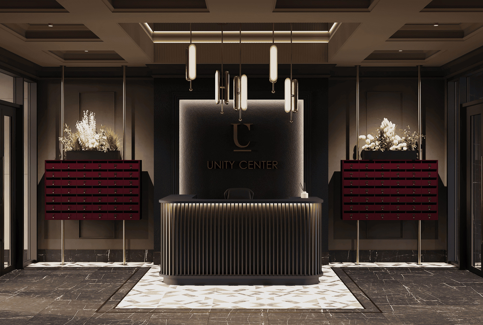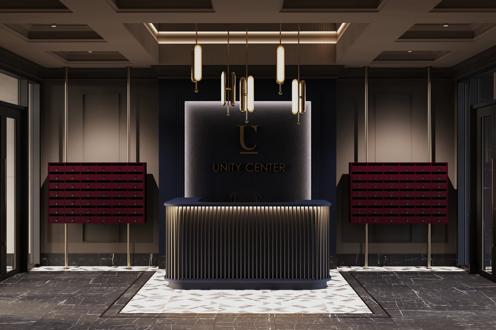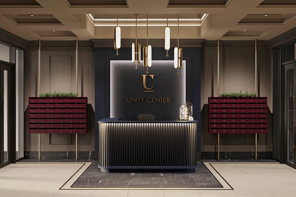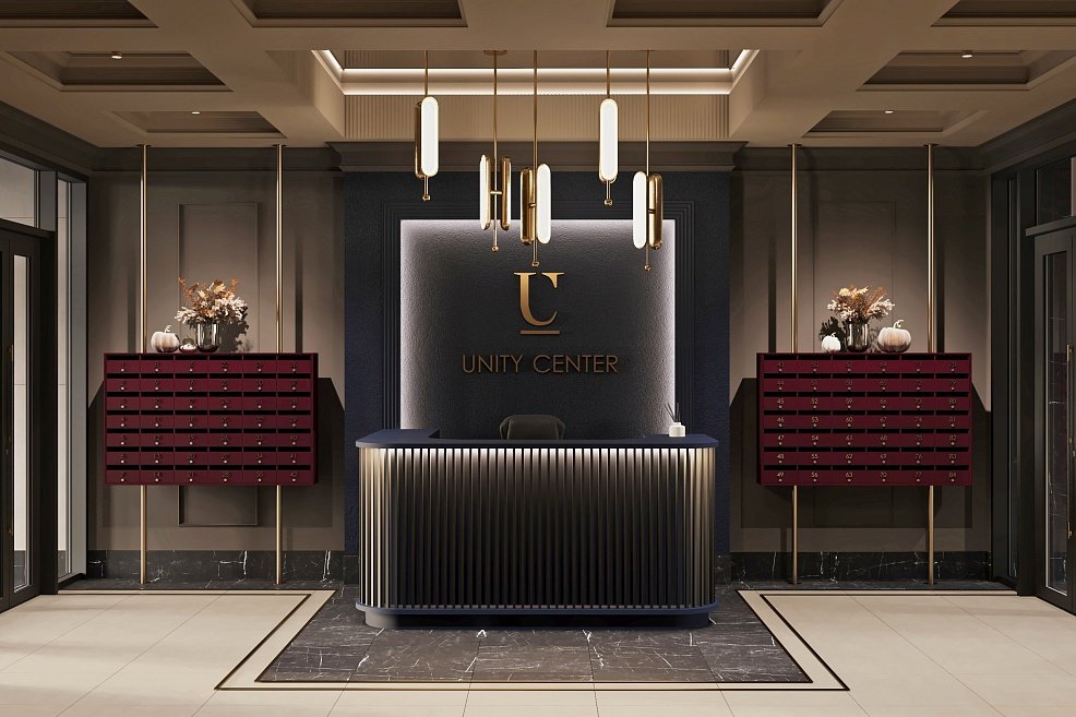 Архитектурная концепция проекта отличается смелыми решениями и выразительным стилем. В фасадах Unity Center — чистые линии, простые формы, спокойные цвета и текстуры, созвучные окружающему урбанистическому ландшафту. Особенностью проекта стало сложное остекление, придающее зданию уникальность и позволяющее обладателям редких квартир реализовать вдохновляющие дизайн-проекты.